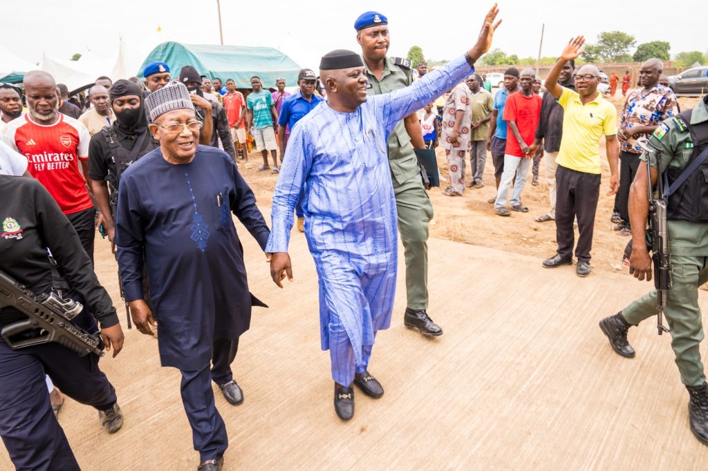 The Honourable Minister of Water Resources and Sanitation, Engr. Prof. Joseph Terlumun Utsev and the Deputy Governor of Benue State Barr. Sam Ode during the flag- off ceremony